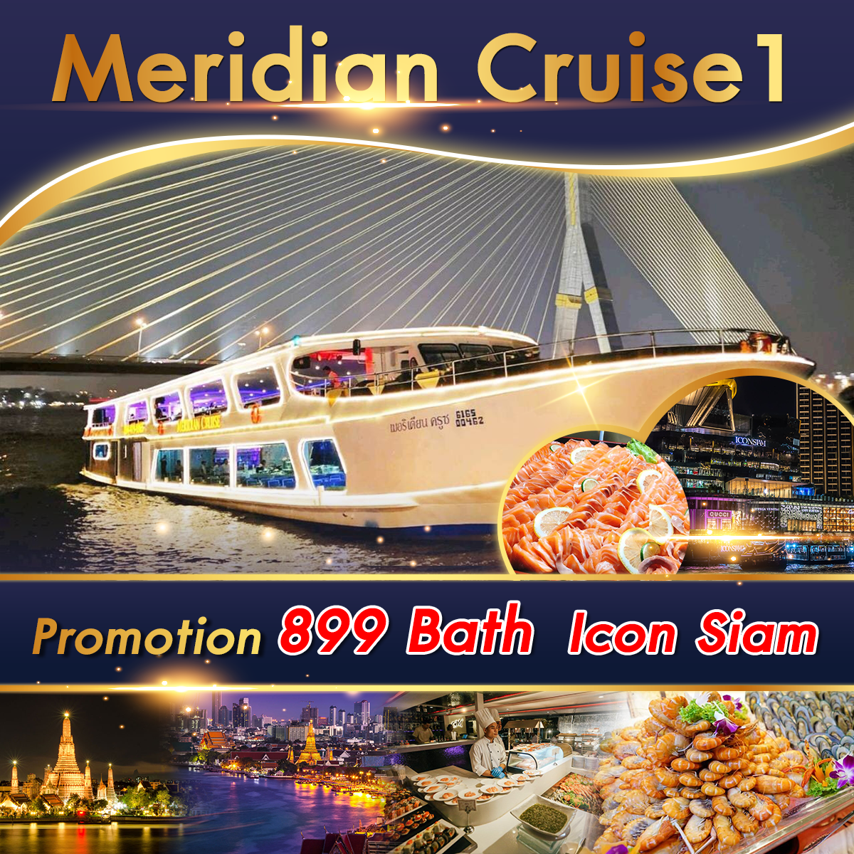 Meridian Cruise, the brand new cruise, departs from the famous ICONSIAM shopping center along the Chao Phraya River. Enjoy international buffet dinner while surrounded by the scenic view of Bangkok night.