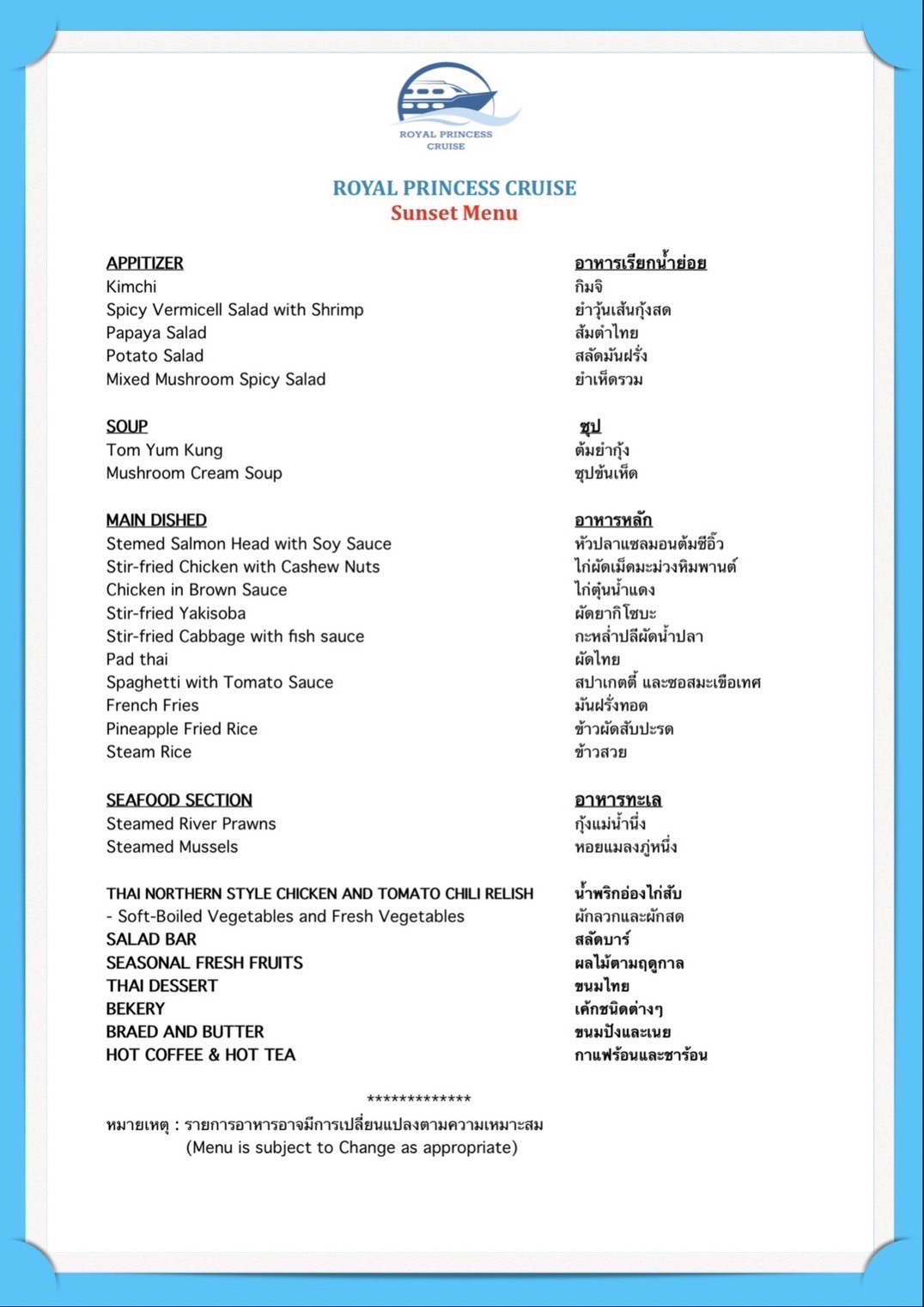 Royal Princess Cruise - Sunset ProgramAdult ฿790 / Child(4-10) ฿600