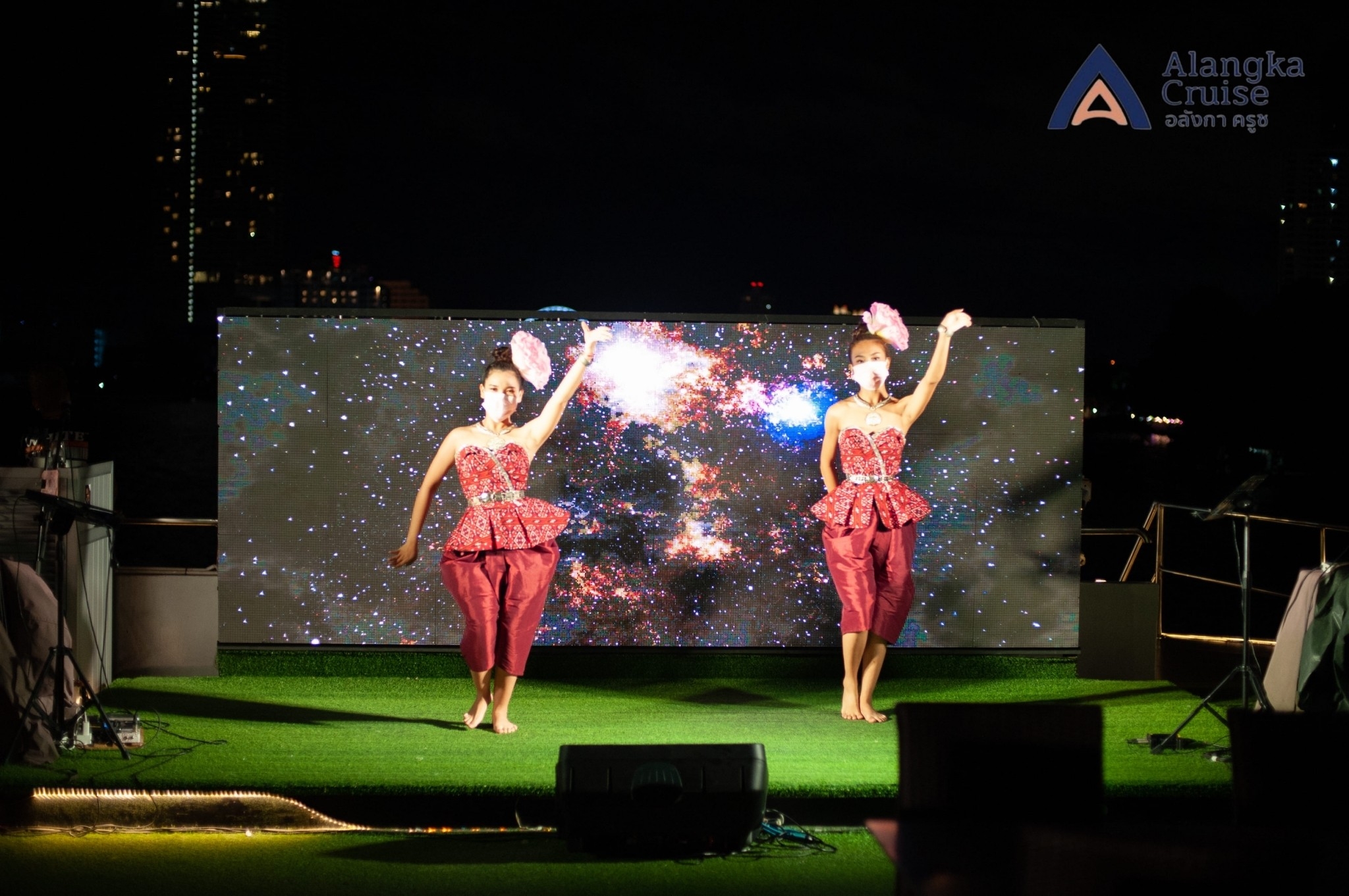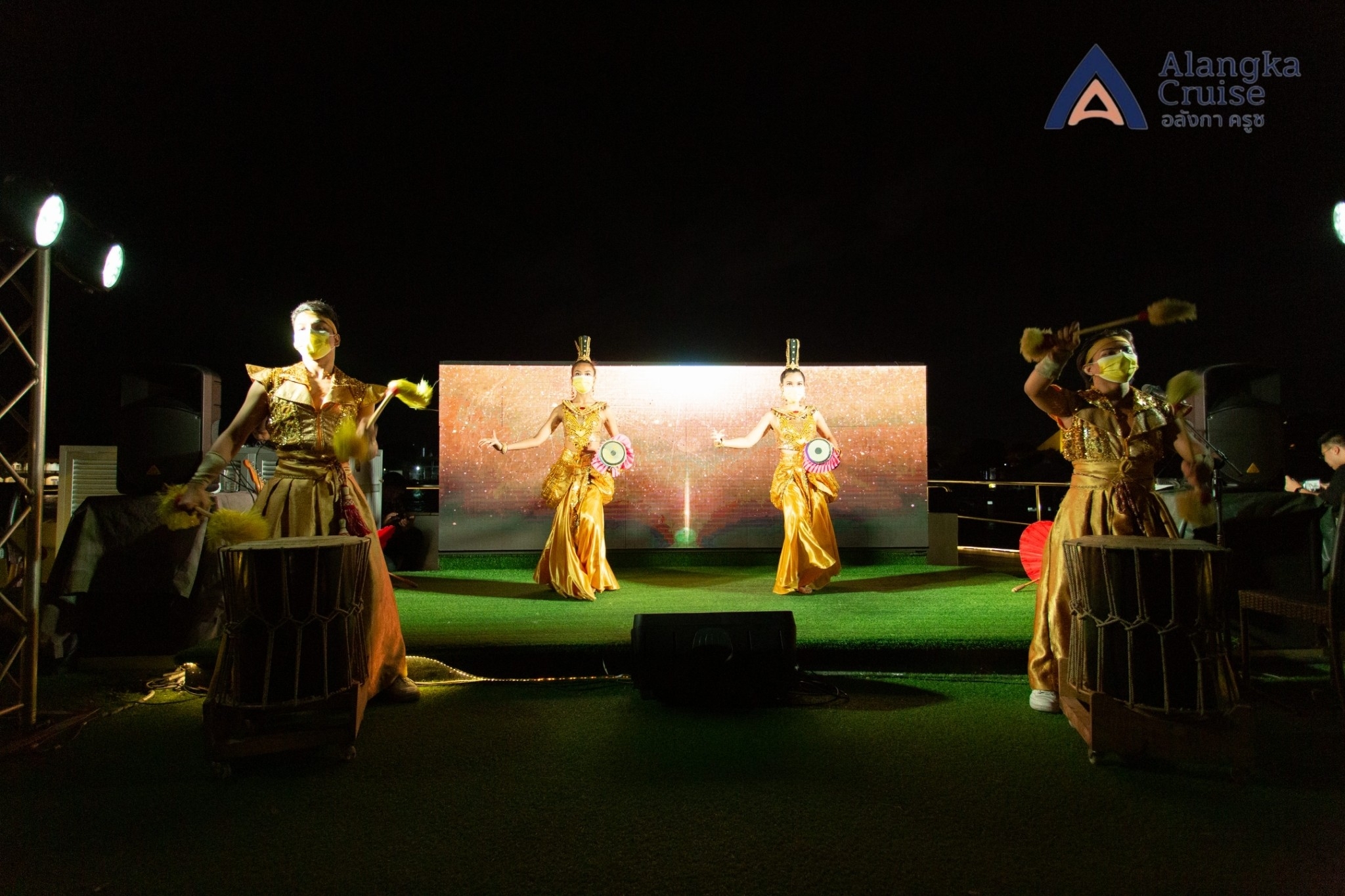7:15-7:30 pm | Board Alangka cruise at ICONSIAM Pier 4. Departure from ICONSIAM. Time for your dinner under the candlelight with“Live music” by professional singers in a romantic atmosphere taste of our international Buffet Function and Seafood elegantly arrange from appetizer to the main course and ending with desserts to your dining satisfaction. And enjoy the beautiful traditional Thai Dancing Performances on the cruise. |
