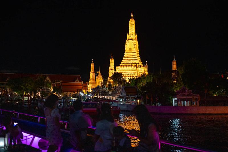 07.30 pm | Departure from River City pier. While you are sipping your drinks enjoy the beautiful night scenery on both side of the Chao Praya river in our open-air deck. Our captain will be leading the boat up to Pinklao Bridge and then, you will have an unique opportunity to get some snapshot of two most wonderful night spot in Bangkok, Wat Arun -The Temple of Dawn and the Grand Palace & Wat Pra Kaew -The Temple of Emerald Buddha. After take pictures of The Temple of Dawn and the Grand Palace for your memory. Return up the river to Taksin Bridge Viewing of color light decoration on the river side. |