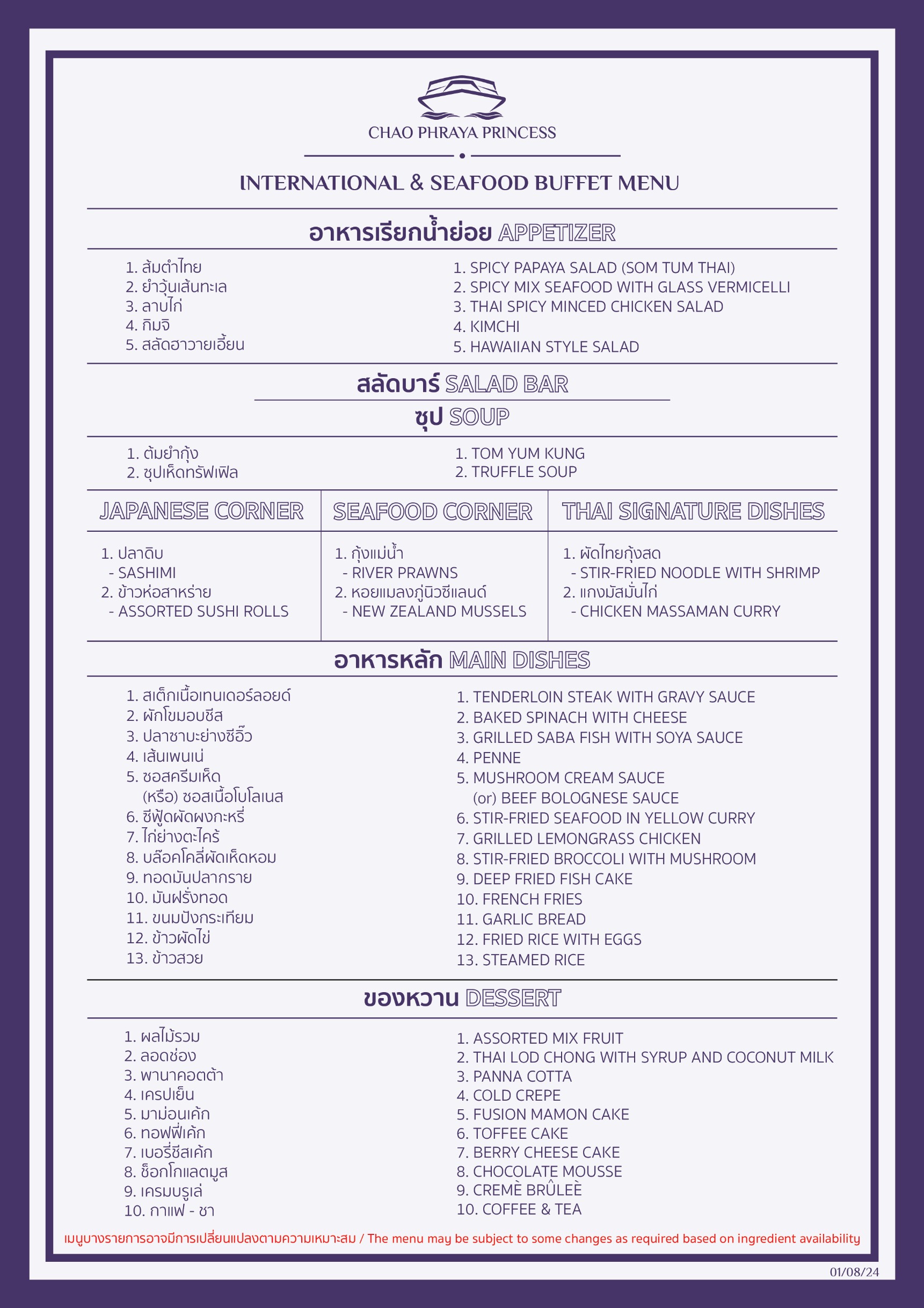 Dinner cruise on Chao Phraya Princess, the legendary cruise ship that pioneered cruising business in Bangkok. Enjoy international seafood buffet while entertained by professional singer and musician. Surrounded by beautiful scene of Chao Phraya river at night. Chao Phraya Princess will make your memorable night. The ship departs daily from Asiatique The Riverfront