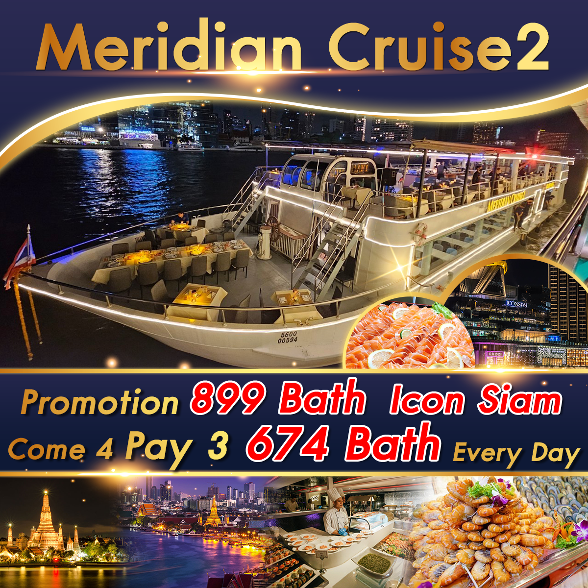 Meridian 2 Cruise DinnerAdult ฿899 (4 pay 3 - ฿674) / Child(4-10) ฿750