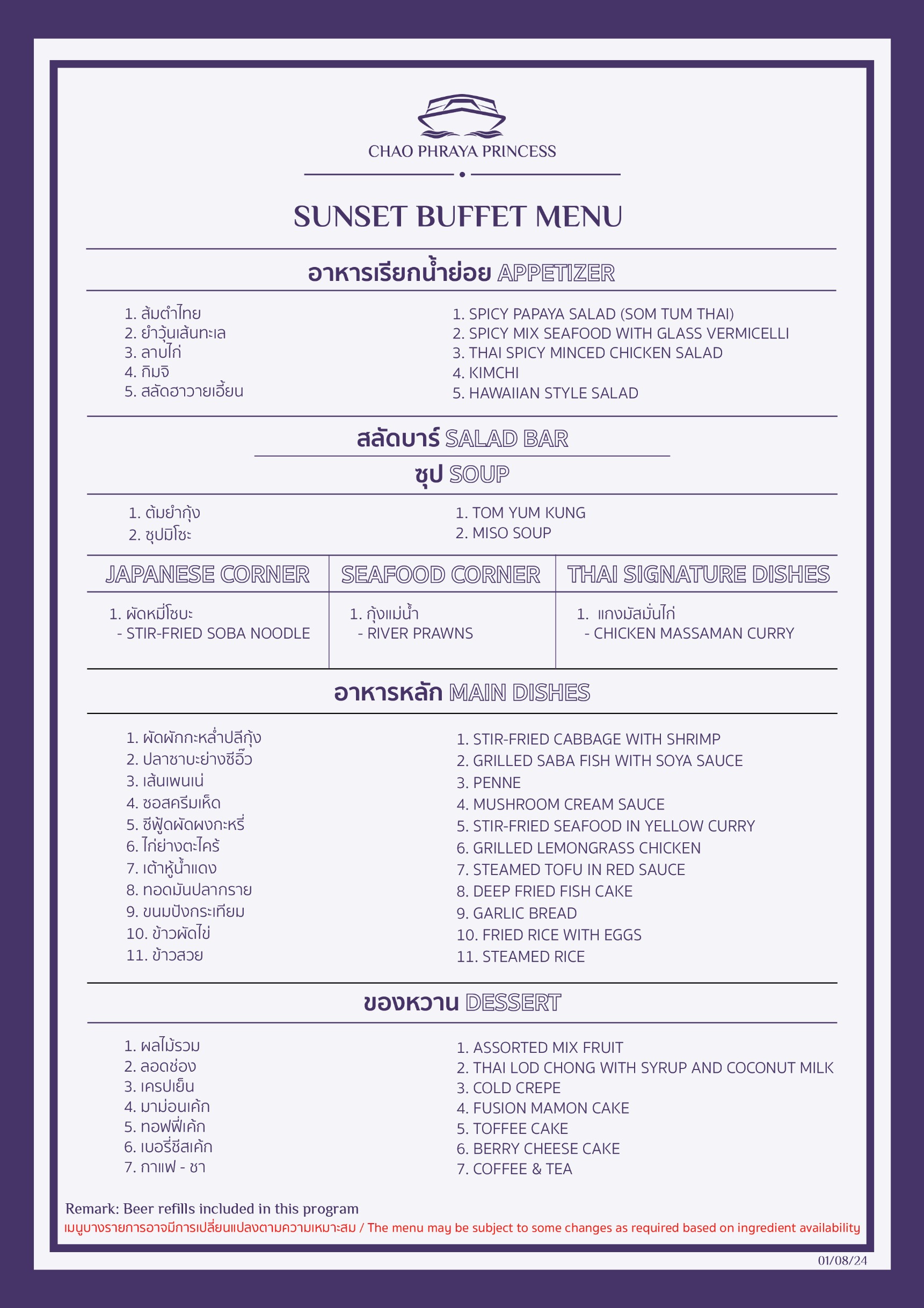 Chao Phraya Princess Sunset (Asiatique)Adult ฿950 / Child(4-10) ฿750