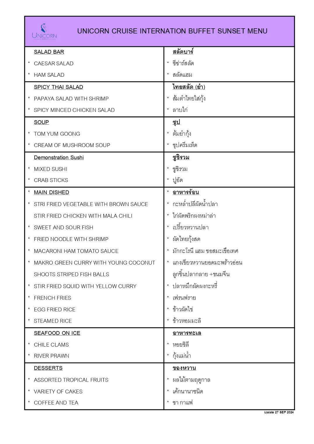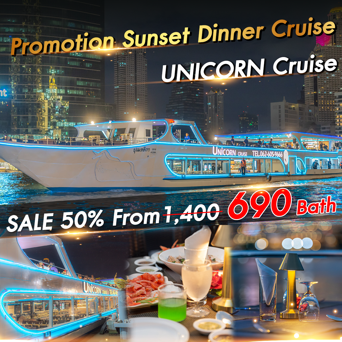 Unicorn Cruise Sunset (Sat-Sun)Adult ฿690 / Child(4-10) ฿550