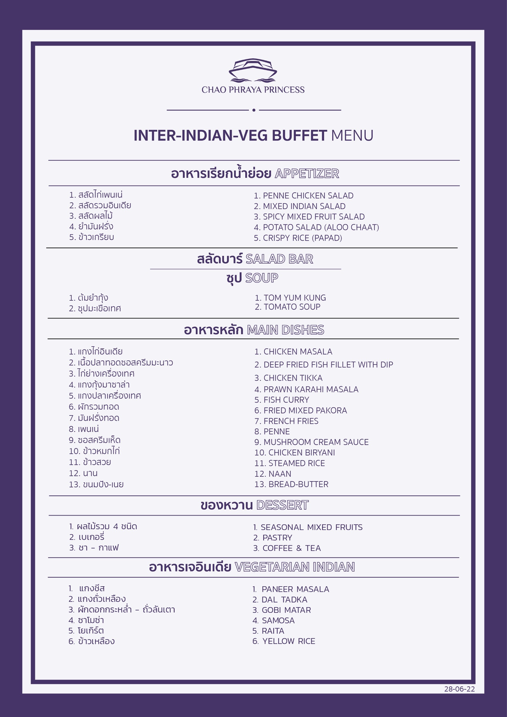 Chao Phraya Princess (Terminal 21 Rama 3) for IndianAdult ฿1,200 / Child(4-10) ฿950