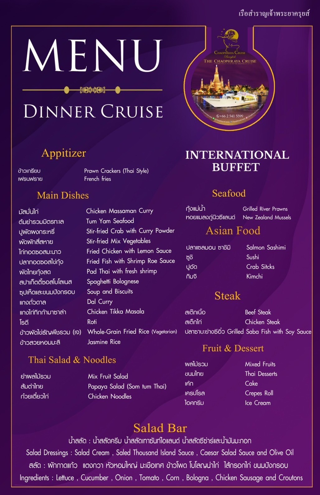 We make sure you will have the best experience in Bangkok dinner cruises.