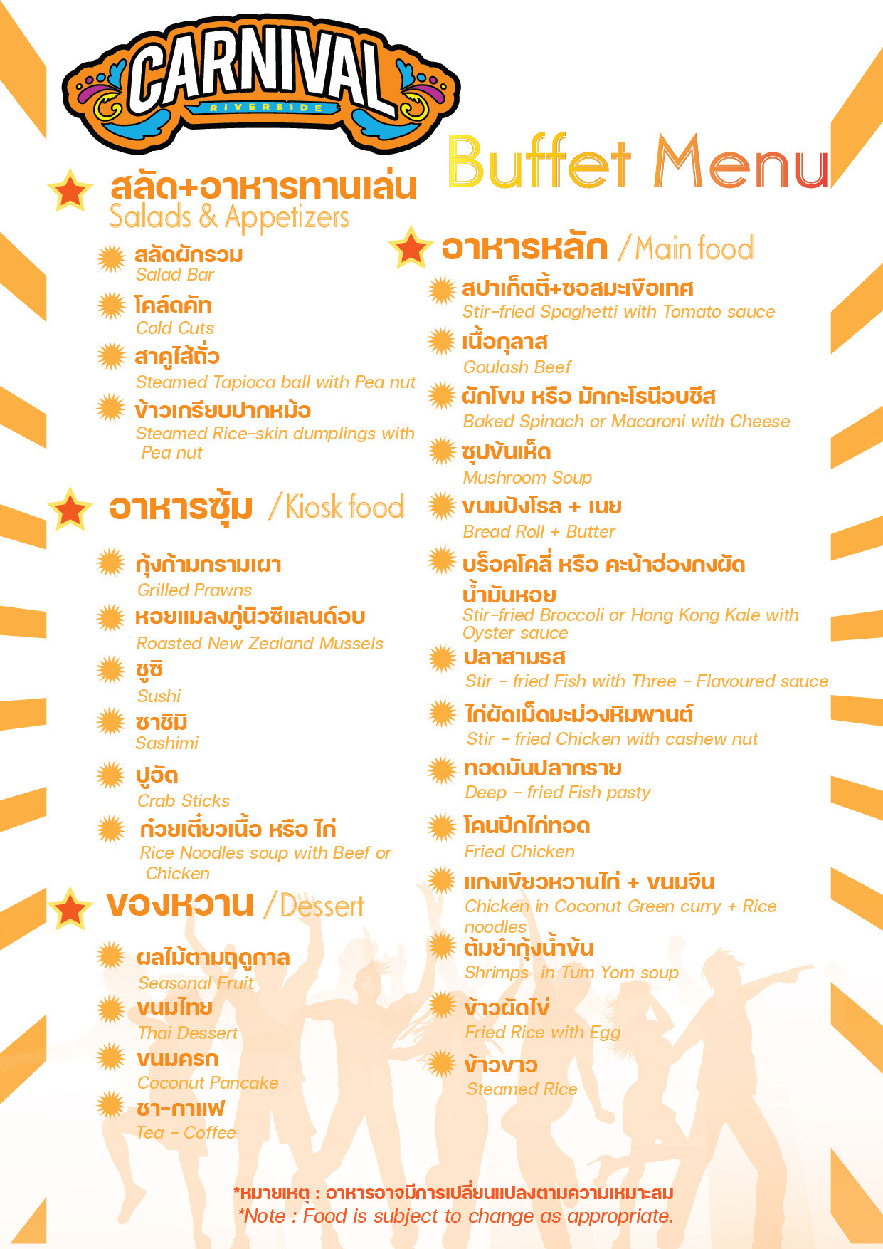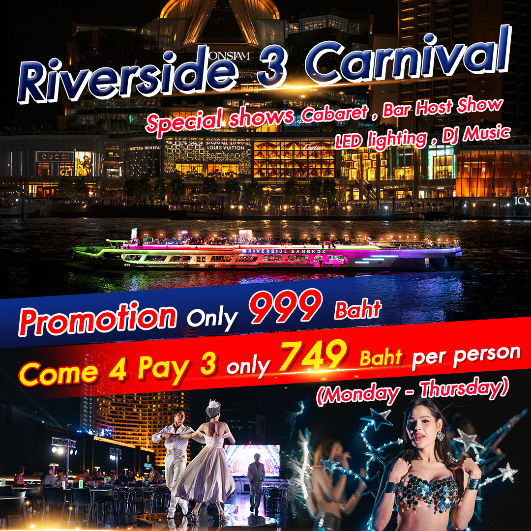 Riverside 3 Carnival CruiseAdult ฿999 (4 pay 3 - ฿749 Monday - Thursday) / Child(4-10) ฿800