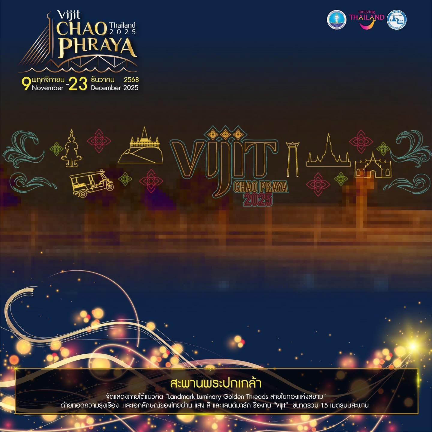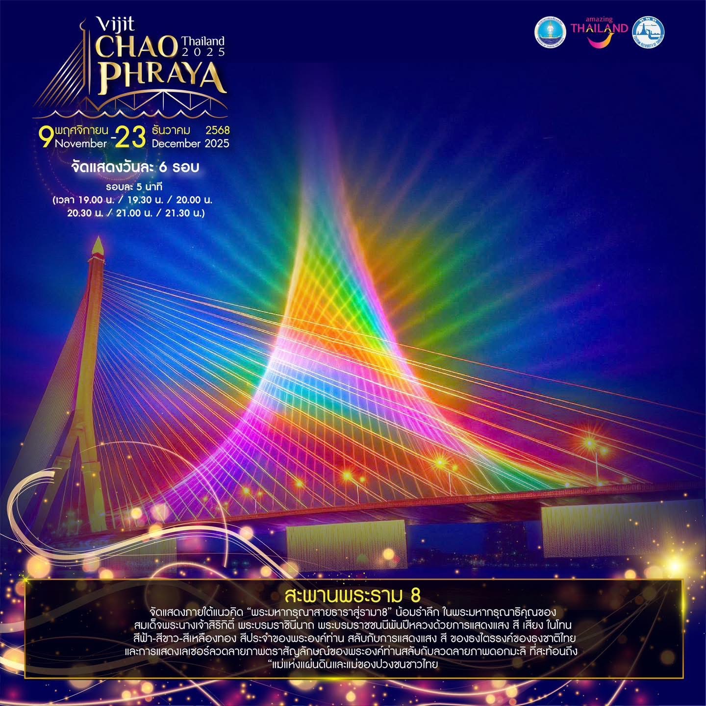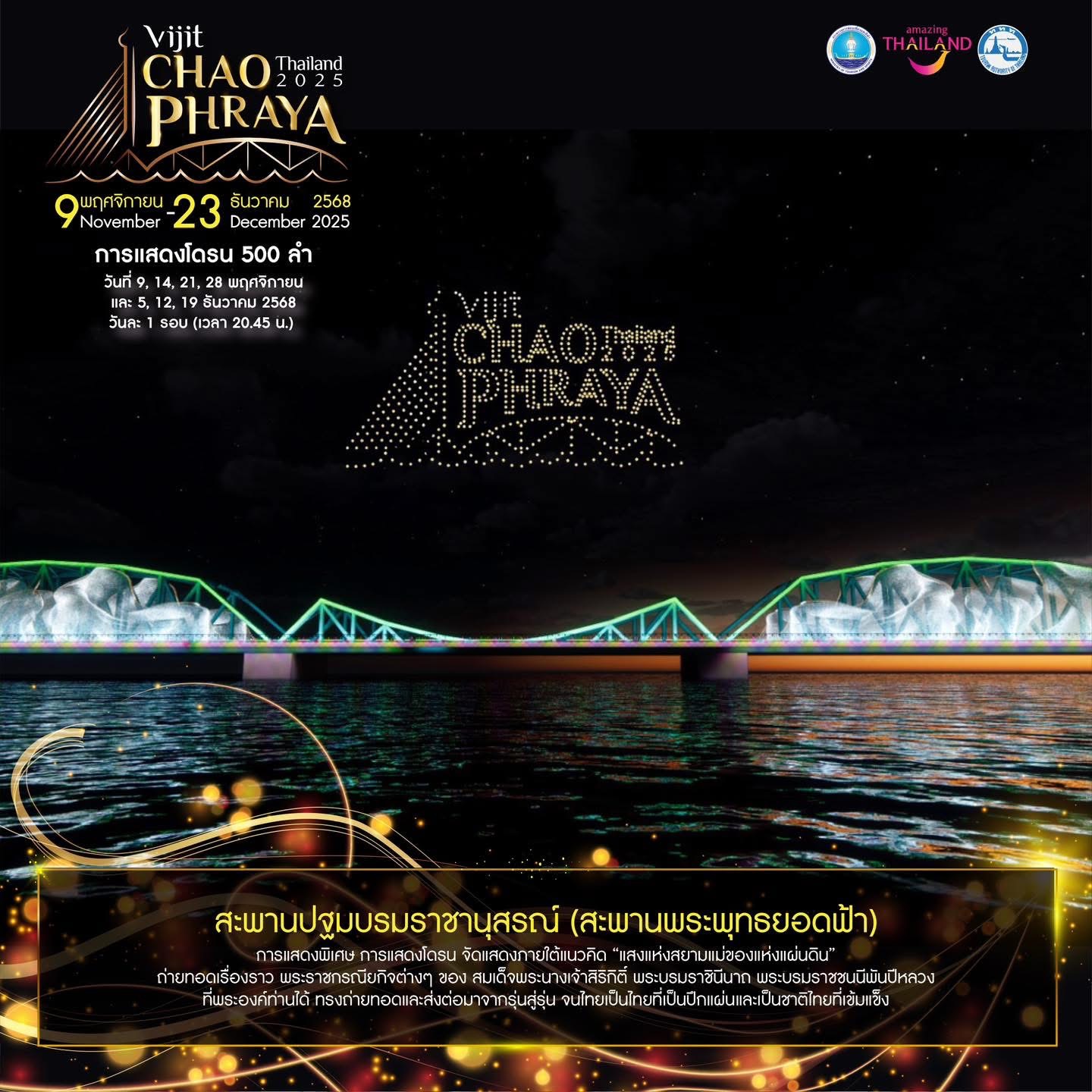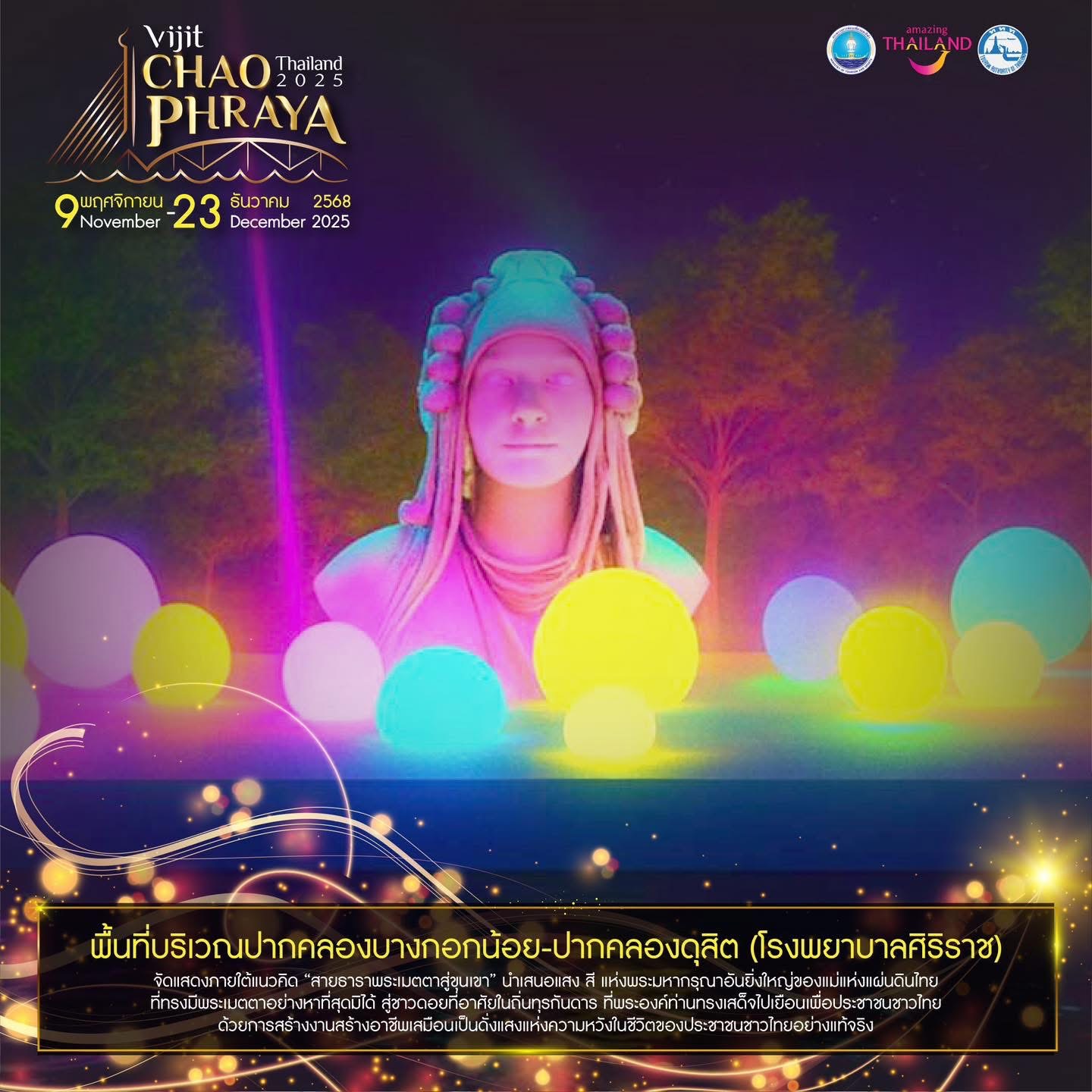Book Now! Experience “Vijit Chao Phraya 2025” – The Light of Siam, honoring the Mother of the Land along the Chao Phraya River. Organized by the Tourism Authority of Thailand (TAT).