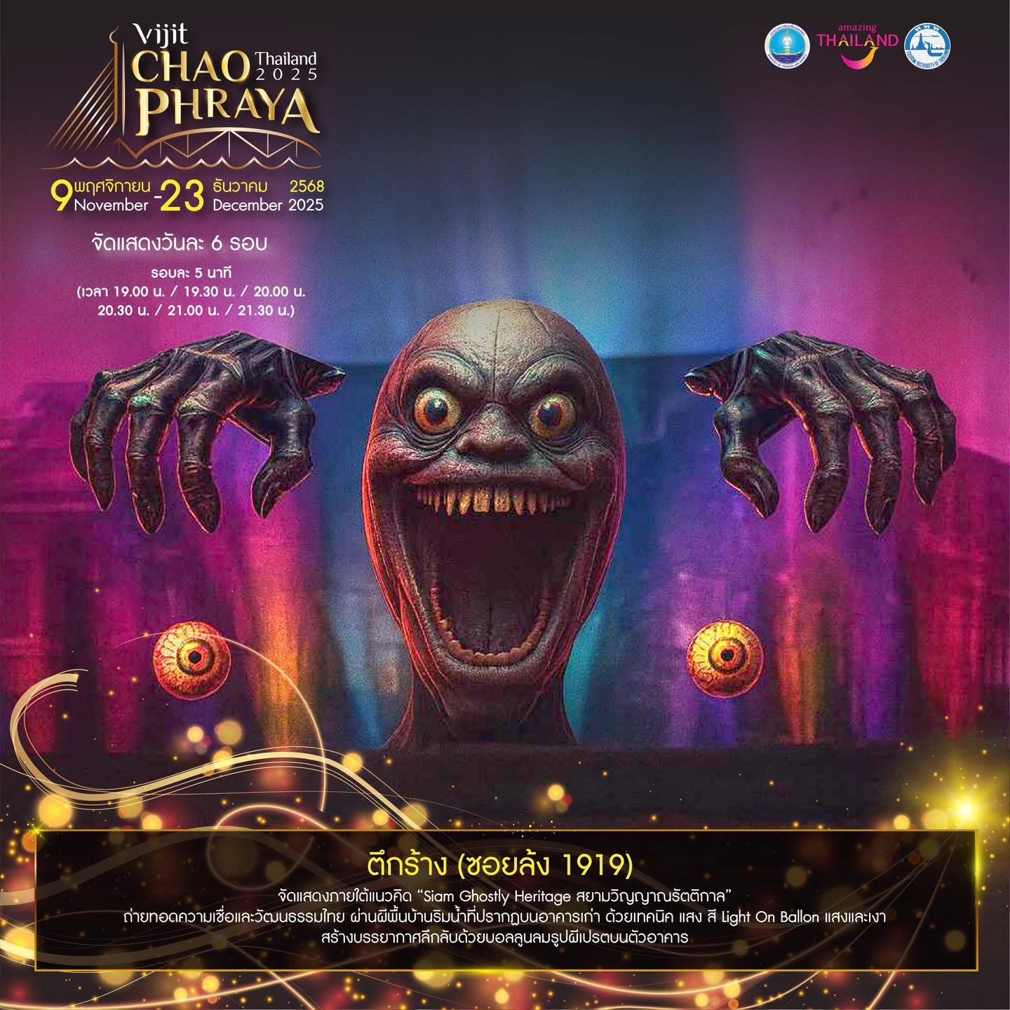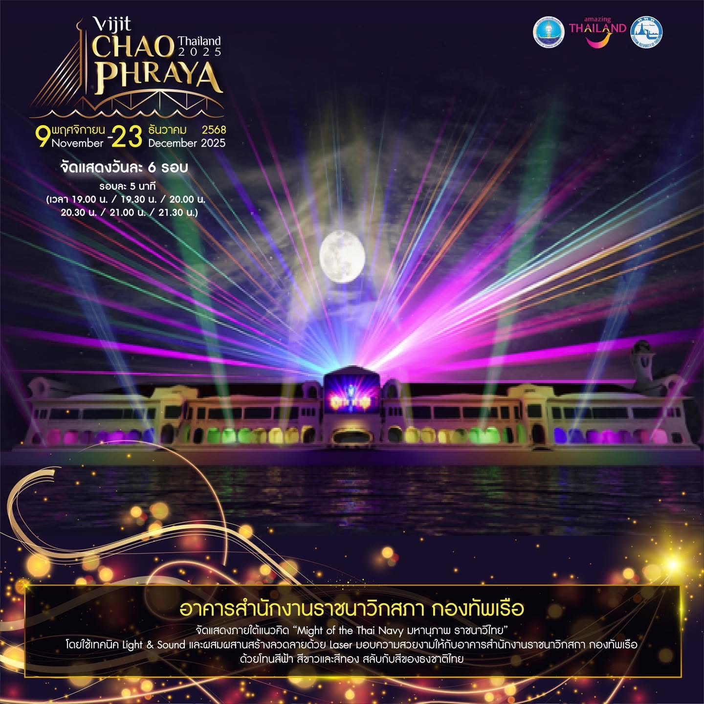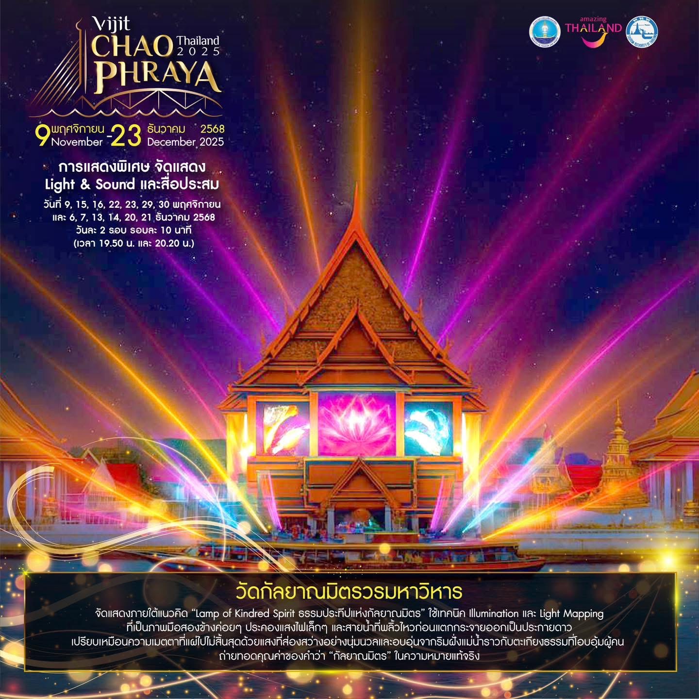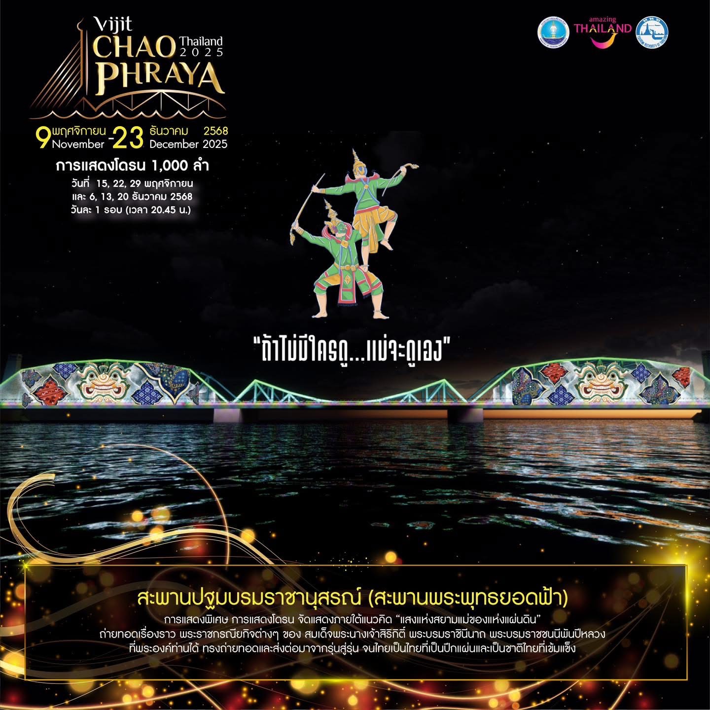 Book Now! Experience “Vijit Chao Phraya 2025” – The Light of Siam, honoring the Mother of the Land along the Chao Phraya River. Organized by the Tourism Authority of Thailand (TAT).
