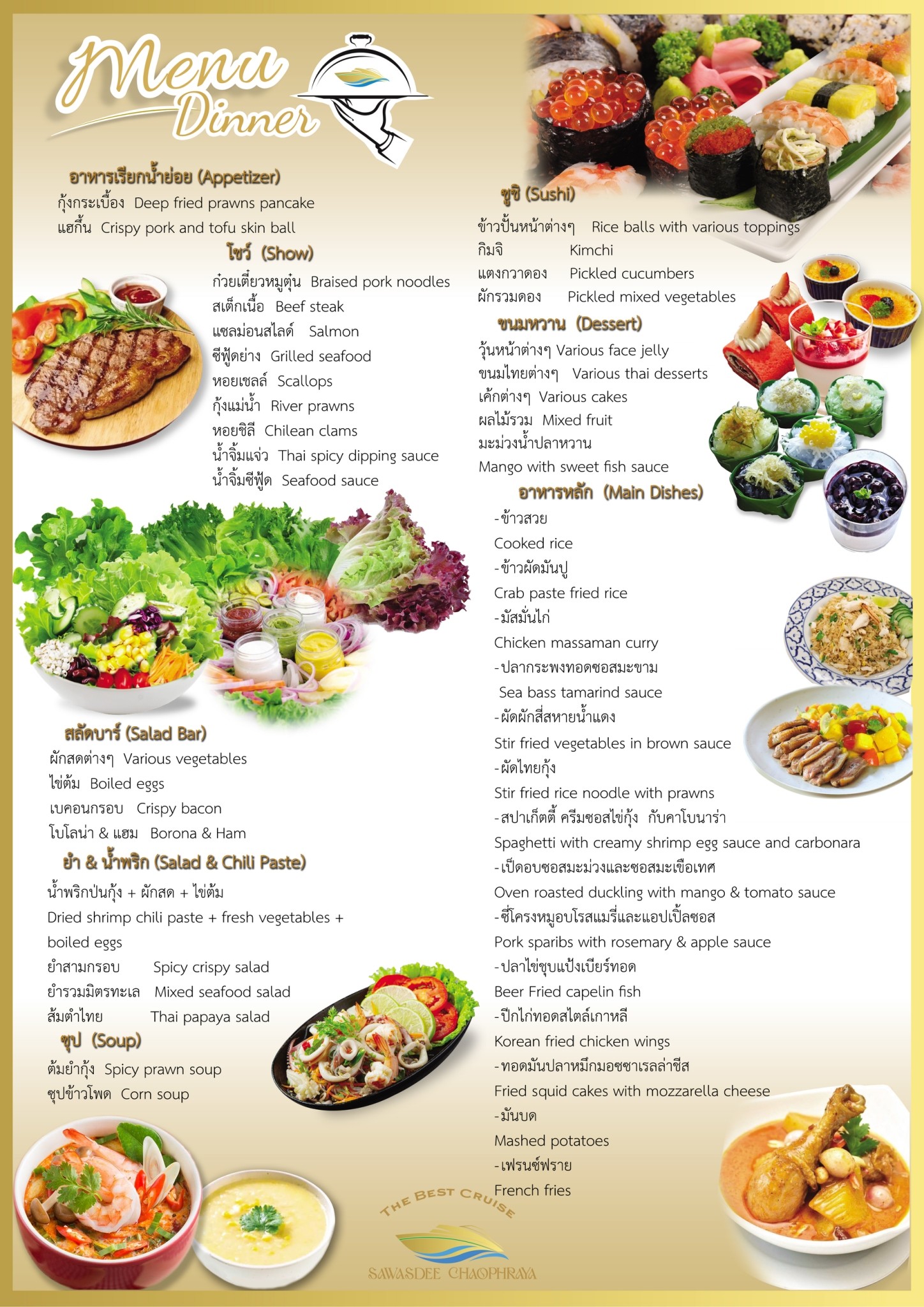 Sawasdee Chaophraya CruiseAdult ฿1,300 / Child(4-10) ฿1,000